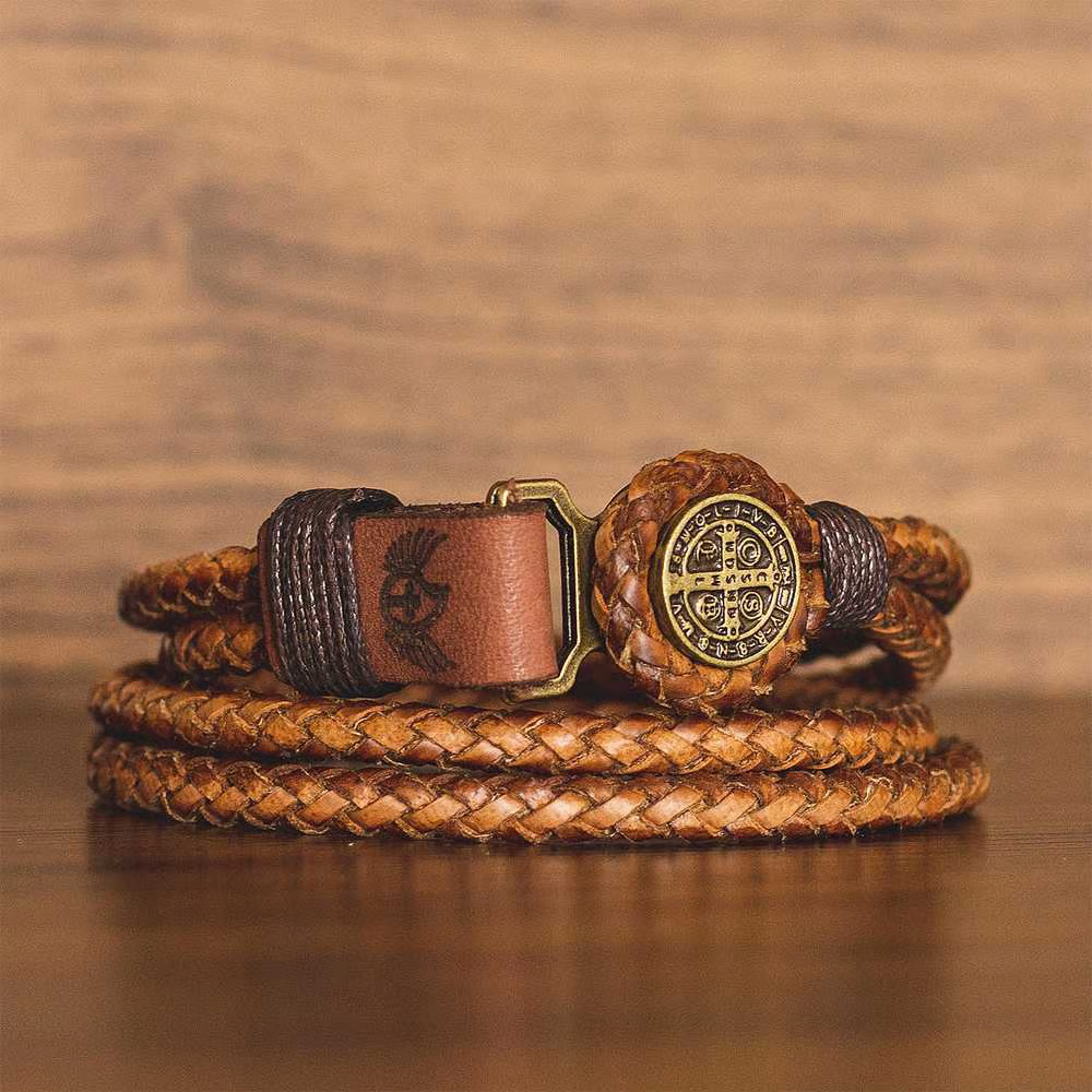 1 – Pulseira de São Bento Couro Trançado (escolha o tamanho no guia de medidas)